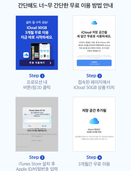아이폰을 사용하시는 분들이라면 애플의 가상 클라우드 서비스인 아이클라우드를 아실텐데요. 이 서비스를 이용하기 위해서는 별도의 금액을 지불해야 가능한데 아래 이벤트 행사를 통해 무료 이용이 가능합니다.