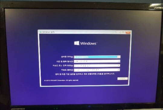 재부팅 되면 윈도우10설치 화면이 나타나고 안내에 따라 새로 설치하거나 포맷 및 재설치 하면 됩니다.