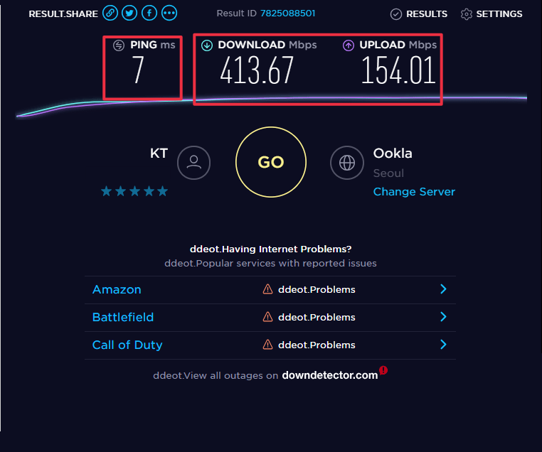 별도의 회원 가입나 설치 없이 무설치 측정이 가능하며 테스트 완료 후 결과값이 좋지 않다면 가입 통신사에 문의해 AS를 받으세요.