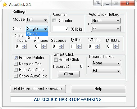 AutoClick v2.1은 BestSoftwareCenter사에서 개발한 최신 버전으로 마우스 클릭을 시간 및 횟수를 통한 지정, 좌표를 통한 지점 설정등 다양한 설정을 통하여 편리한 마우스 클릭을 가능하게 해 주는 마우스 자동 실행 프로그램으로 무료로 배포되고 있으니 필요하신 분들은 다운로드해 사용하세요.