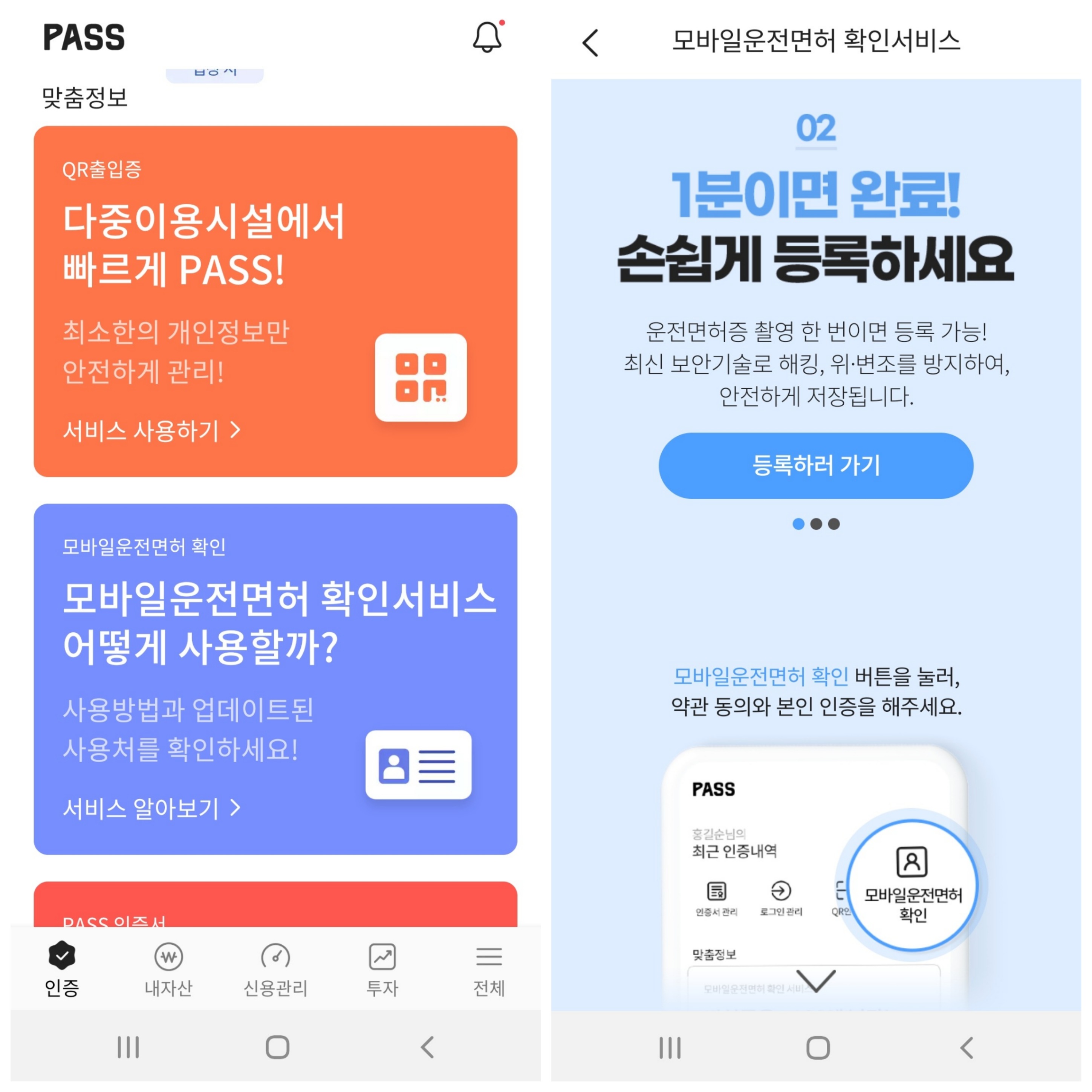 2020년 부터는 모바일 운전면허증을 스마트폰에 등록해 신분을 증명할 수 있는 법제화가 되었는데요. ICT규제샌드박스(신기술 서비스가 국민의 생명과 안전에 저해되지 않는다면 일정 기간 기존 규제의 일부 또는 전체를 적용받지 않고, 시장 출시나 실증 테스트를 할 수 있는 제도)를 통해 운전면허증과 동일한 법적 효력을 가지고 있습니다.