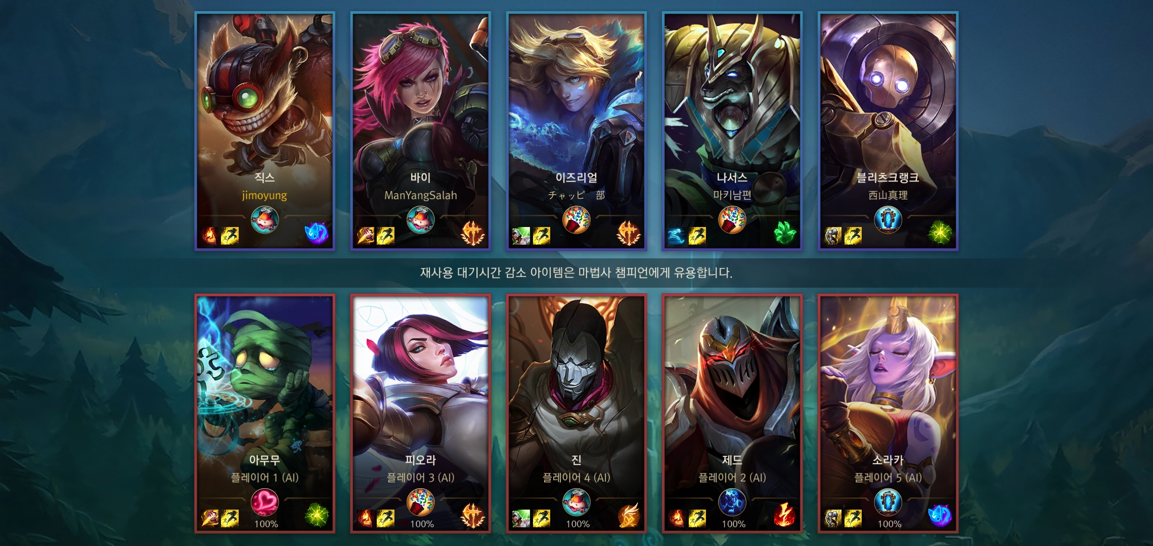 또한 데이터를 이용해 플레이 할 때 협곡 진입 전 로딩 되는 화면에서 100% 로딩바가 채워져도 인게임 되지 않는 현상도 생기고 있습니다.