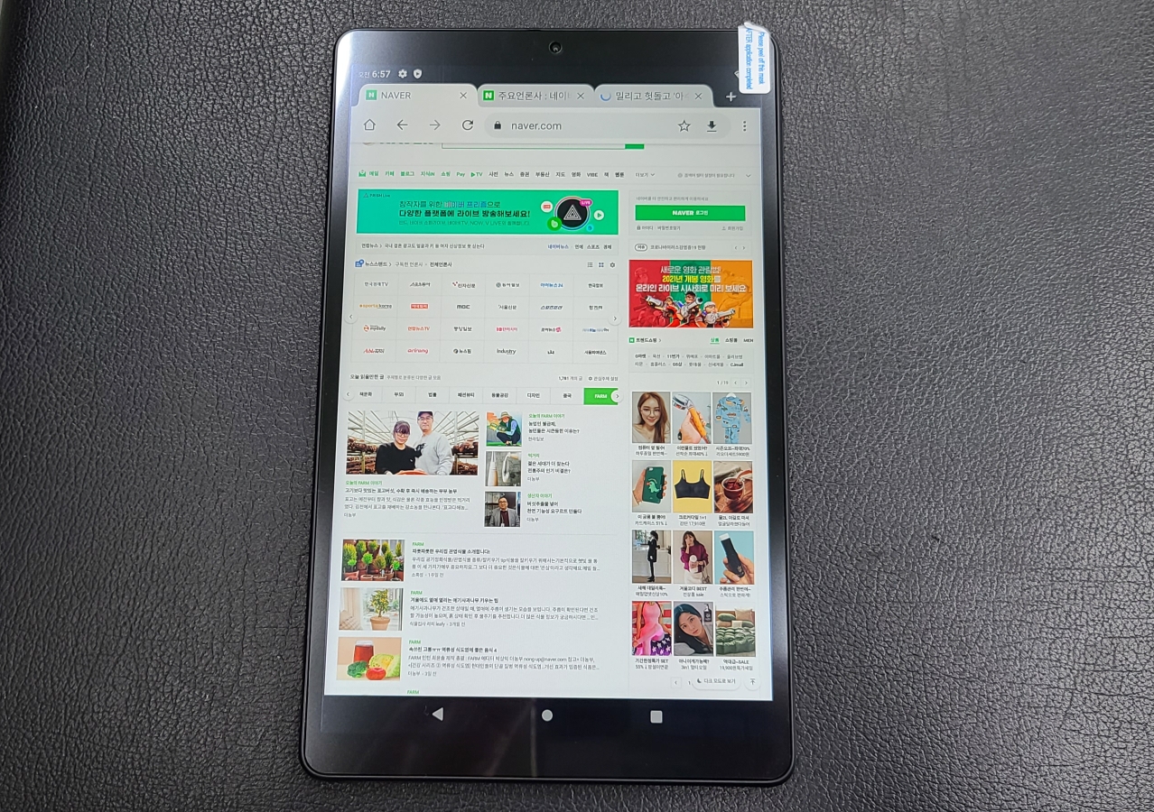 IPS디스플레이로 쨍한 화면에 동영상 재생이 무리없이 가능했고 음질은 다소 투박하지만 스피커를 통해 가격에 맞는 적당함을 보였습니다. 인터넷 테스트에서는 크롬 브라우저를 통해 네이버 접속시 일반 태블릿과 별 차이가 없었으며 게임은 설치해 실행하지는 않았지만 미디어텍 AP로는 당연히 무리이고 동영상 재생이나 유튜브 시청, 인터넷 웹서핑으로 최적의 태블릿입니다.