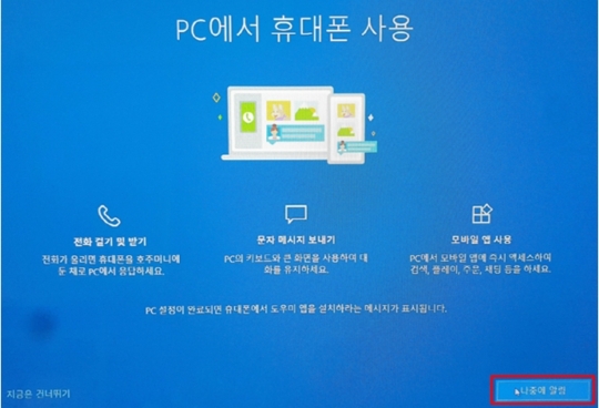 PC에서 휴대폰 사용 화면에서 나중에 알림을 클릭해 줍니다.