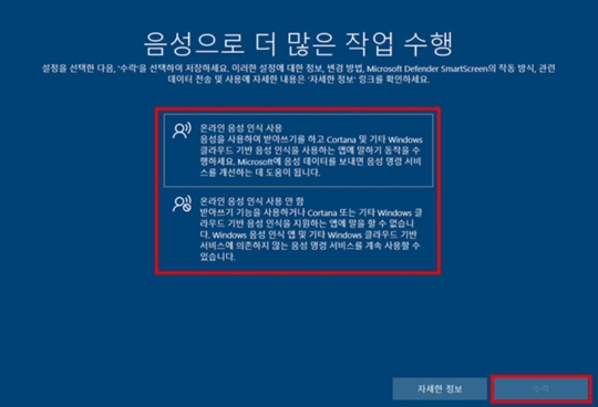 진단 데이터를 Microsoft에 보내기 화면에서 본인이 원하는 항목 선택 후 수락을 클릭하세요.