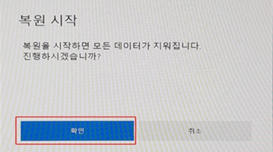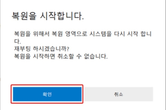 복원을 시작합니다 창이 나타나면 확인을 클릭하세요.