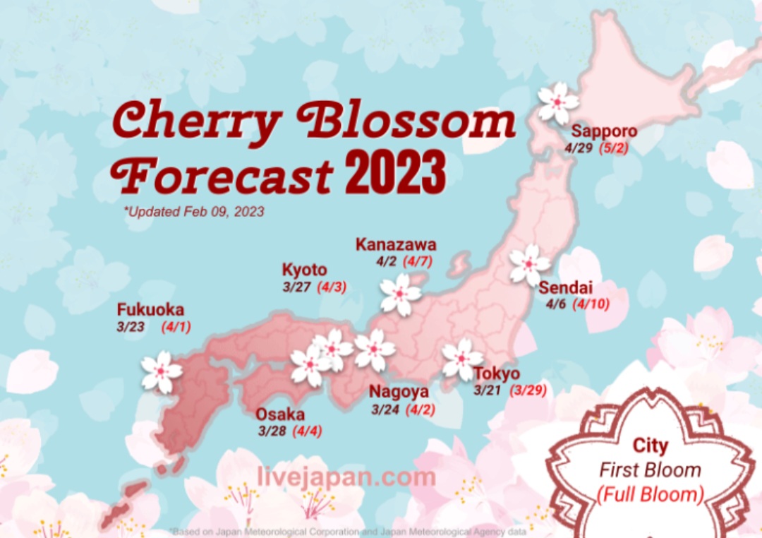 일본에서는 벚나무의 꽃이 핀 시기를 "사쿠라"라고 부르며, 보통 3월 말부터 4월 초까지가 가장 아름다운 시기입니다. 벚꽃이 핀 장소로는 도시 곳곳에 있는 공원, 사원, 연회장 등이 있으며, 이곳들은 매년 많은 관광객들이 찾는 인기있는 명소입니다.