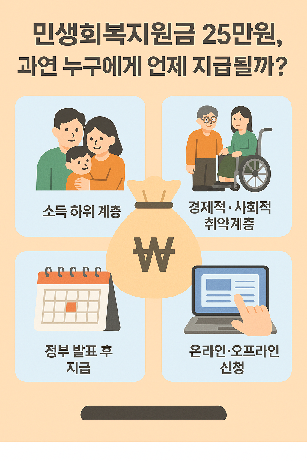 최근 커뮤니티와 SNS를 중심으로 “민생회복지원금 25만원 지급”이라는 소문이 확산되고 있습니다.